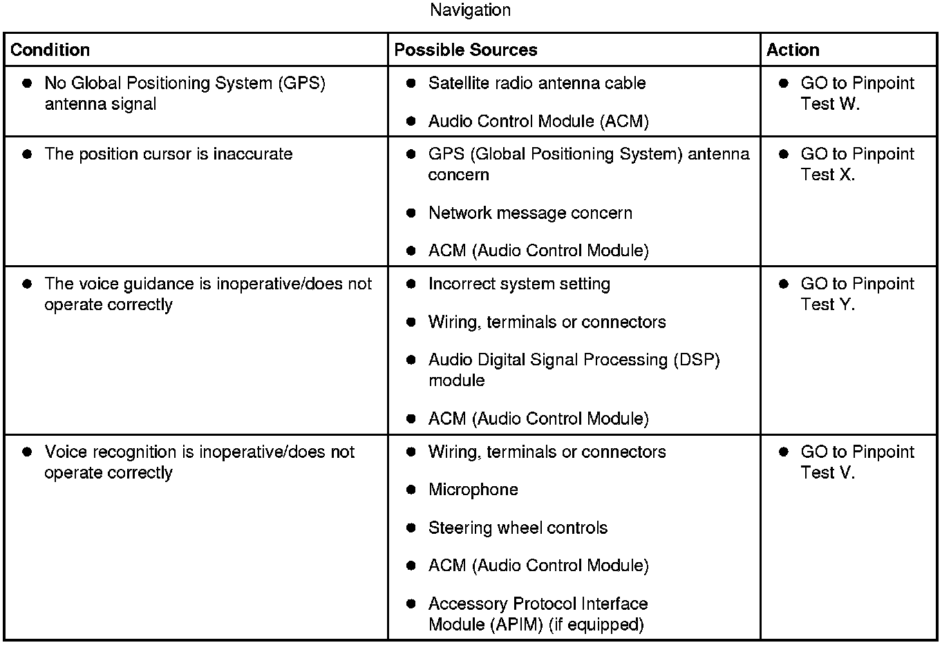 Symptom Chart - Navigation