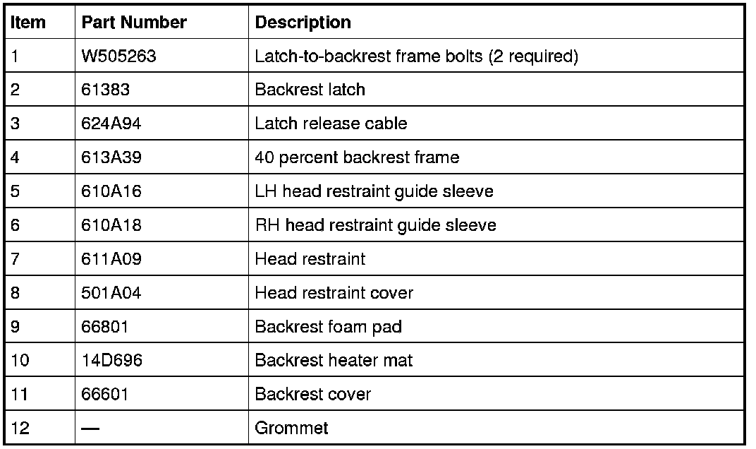 8. If a new backrest foam pad or backrest heater mat is to be installed, obtain a new backrest foam pad and a new backrest heater mat.