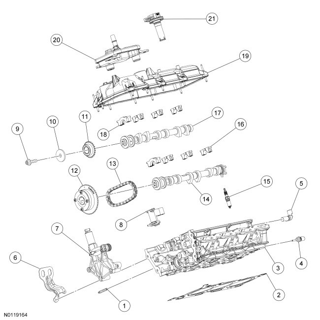 - Tighten the large bolts (1-14) to 24 Nm (18 lb-ft).