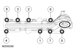 Install a new gasket, RH exhaust manifold and 8 new nuts. Tighten in 2 stages in the sequence shown: