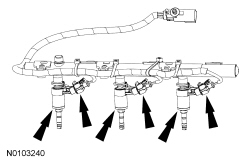 103. NOTICE: Use fuel injector O-ring seals that are made of special fuel-resistant material. The use of ordinary O-ring seals may cause the fuel system to leak. Do not reuse the O-ring seals.