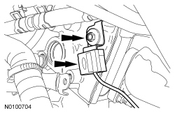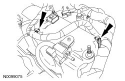 166. Connect the RH VCT (Variable Camshaft Timing) solenoid electrical connector and attach the 2 wiring harness retainers.