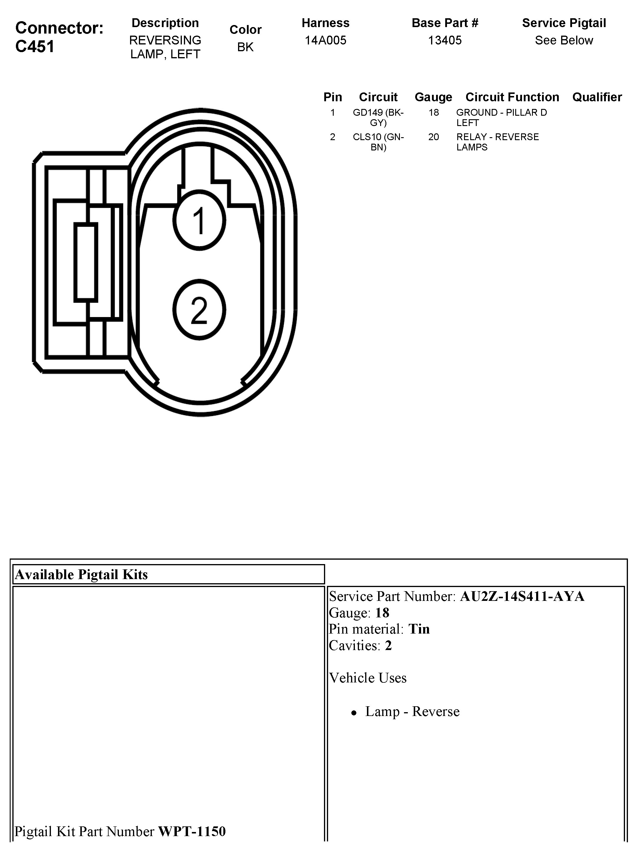 C451 Reversing Lamp, Left