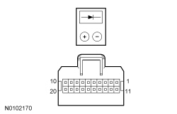 - Check the diode circuits between the ILCM (Interior Lighting Control Module), harness side as follows: