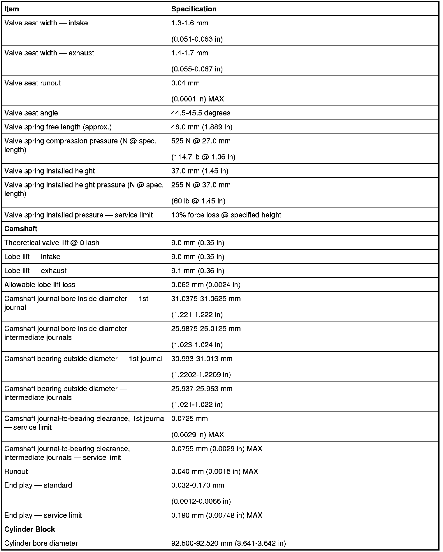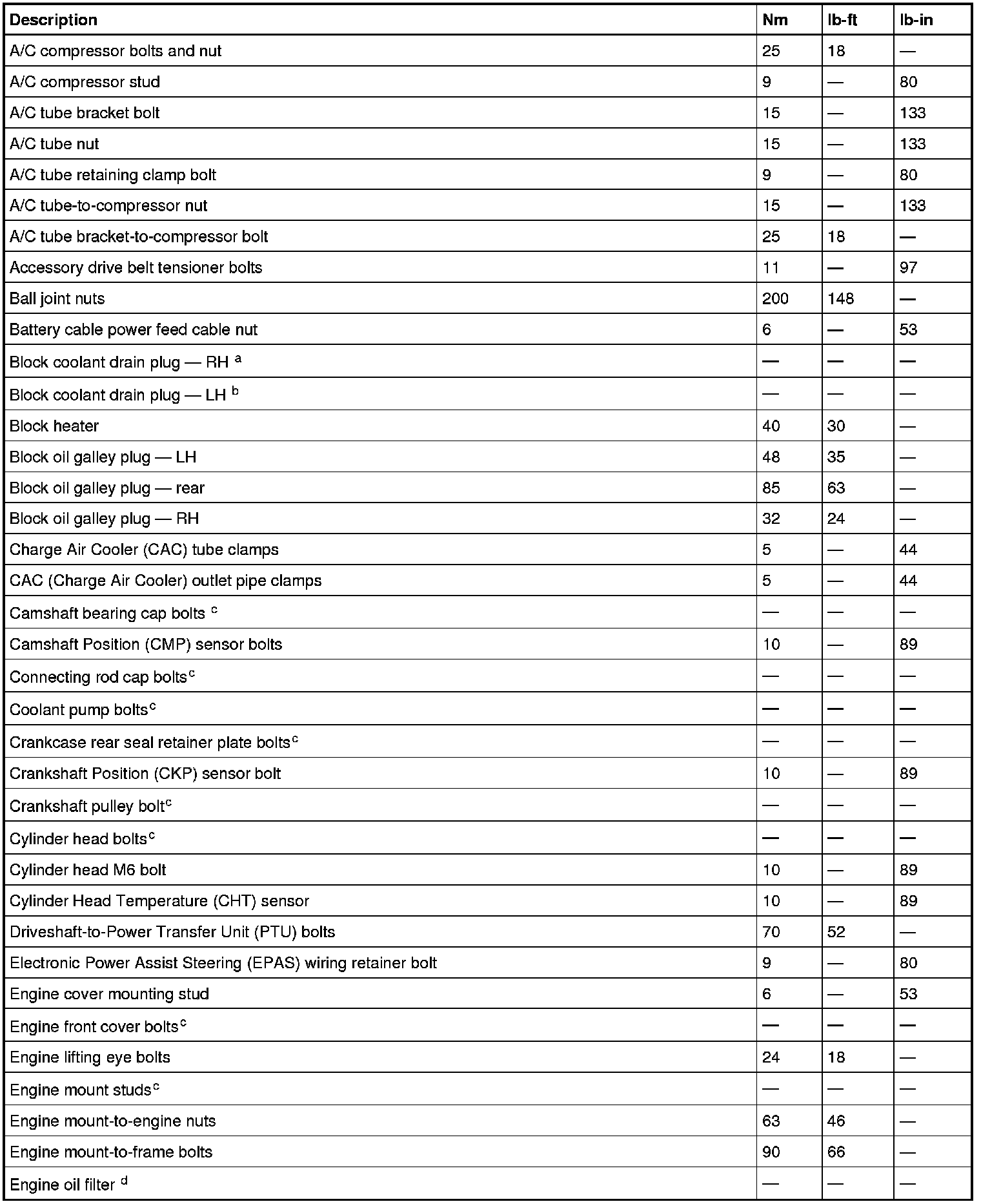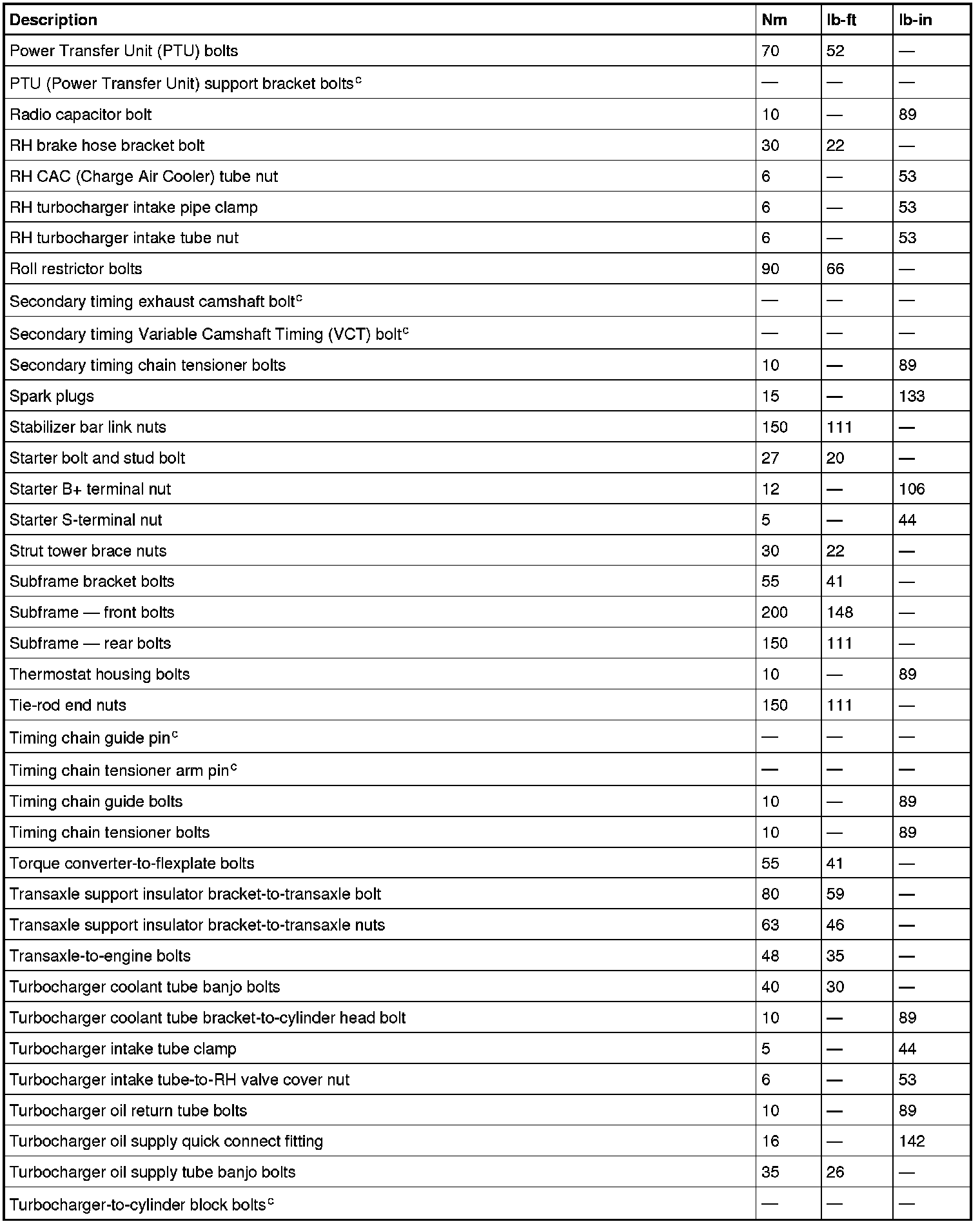 Torque Specifications