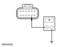 - Measure voltage between DCSM (Dual Climate Controlled Seat Module) C3265B-9, circuit VHS35 (VT/OG), harness side and ground.