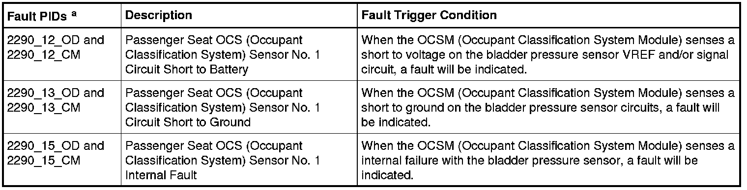 a Fault PIDs that end in OD indicate on-demand status and are associated with DTC B2290. Fault PIDs that end in CM indicate continuous memory status and are associated with DTC B2290.
