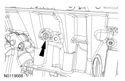 - Install the 3 new upper LH catalytic converter manifold-to-cylinder head nuts and tighten to 25 Nm (18 lb-ft).
