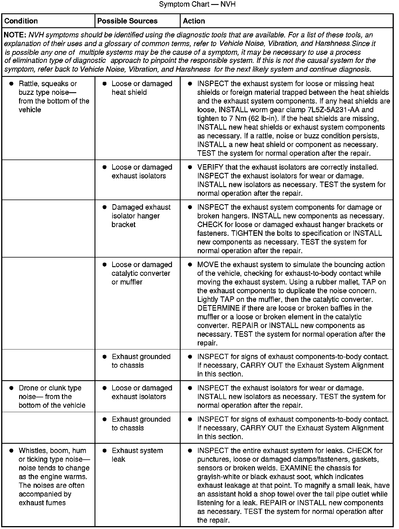 Symptom Chart - NVH