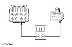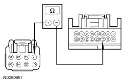 - Measure the resistance between RH front window control switch C604-6, circuit CPW20 (WH/OG), harness side and RH front window motor C608-2, circuit CPW20 (WH/OG), harness side.