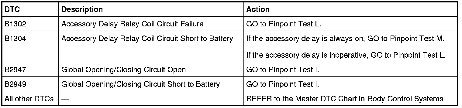 NOTE: This module utilizes a 5-character DTC followed by a 2-character failure type code. The failure type code provides information about specific fault conditions such as opens or shorts to ground. Continuous Memory Diagnostic Trouble Codes (CMDTCs) have an additional 2-character DTC status code suffix to assist in determining DTC history.