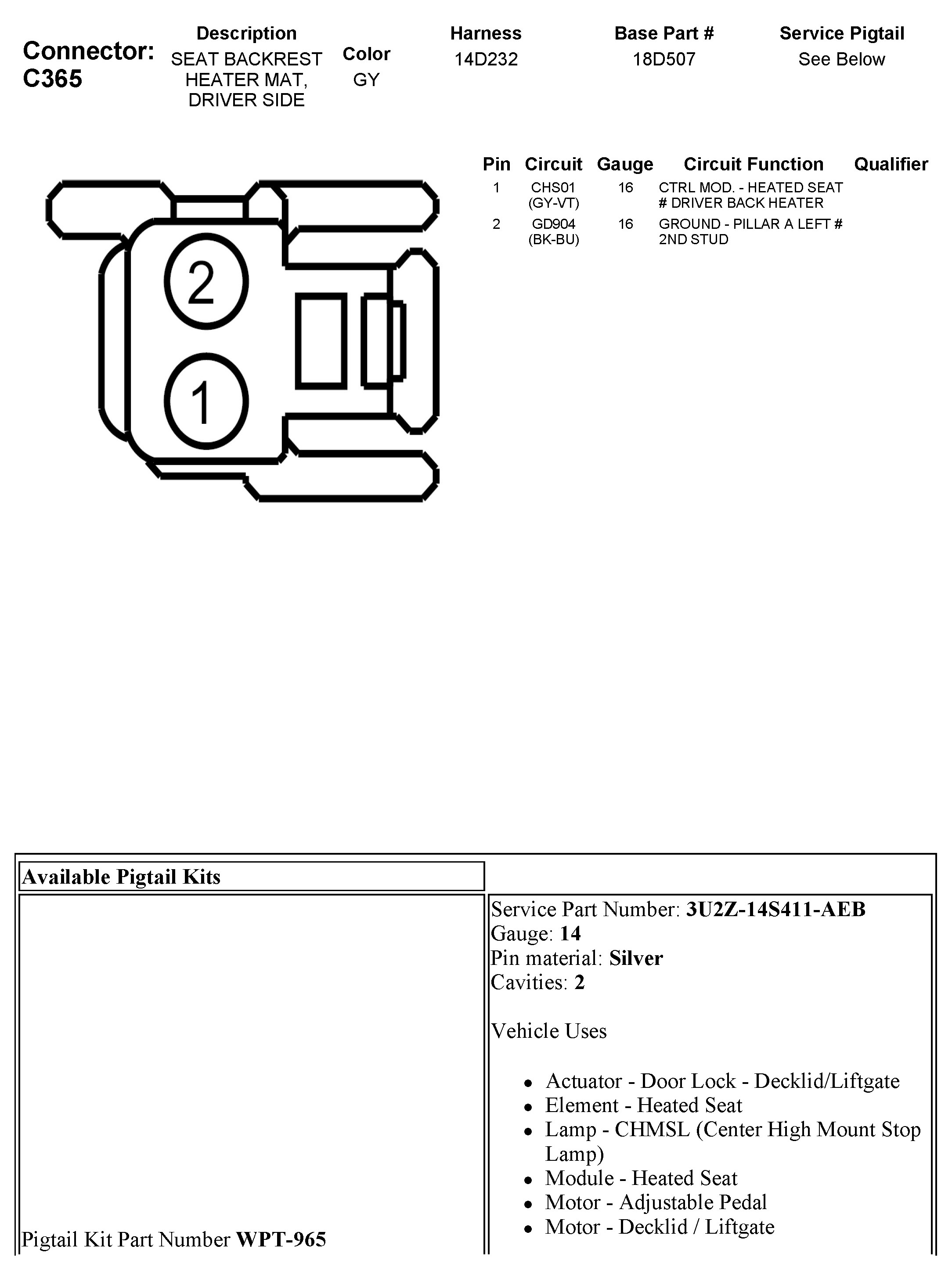 C365 Seat Backrest Heater MAT, Driver Side