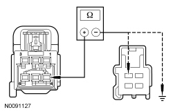 - Measure the resistance between heated seat module C359B-4, circuit CHS02 (YE/BU), harness side and ground.