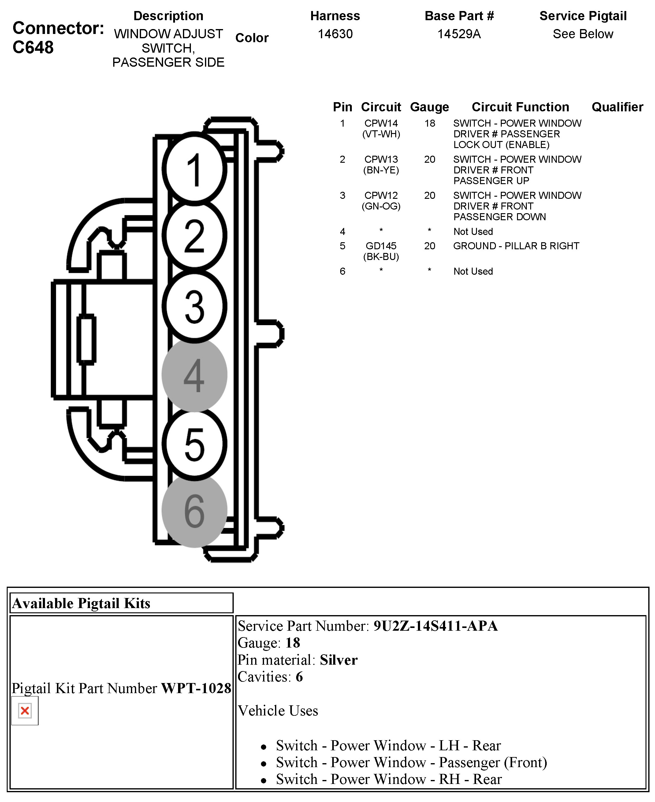 C648 Window Adjust Switch, Passenger Side