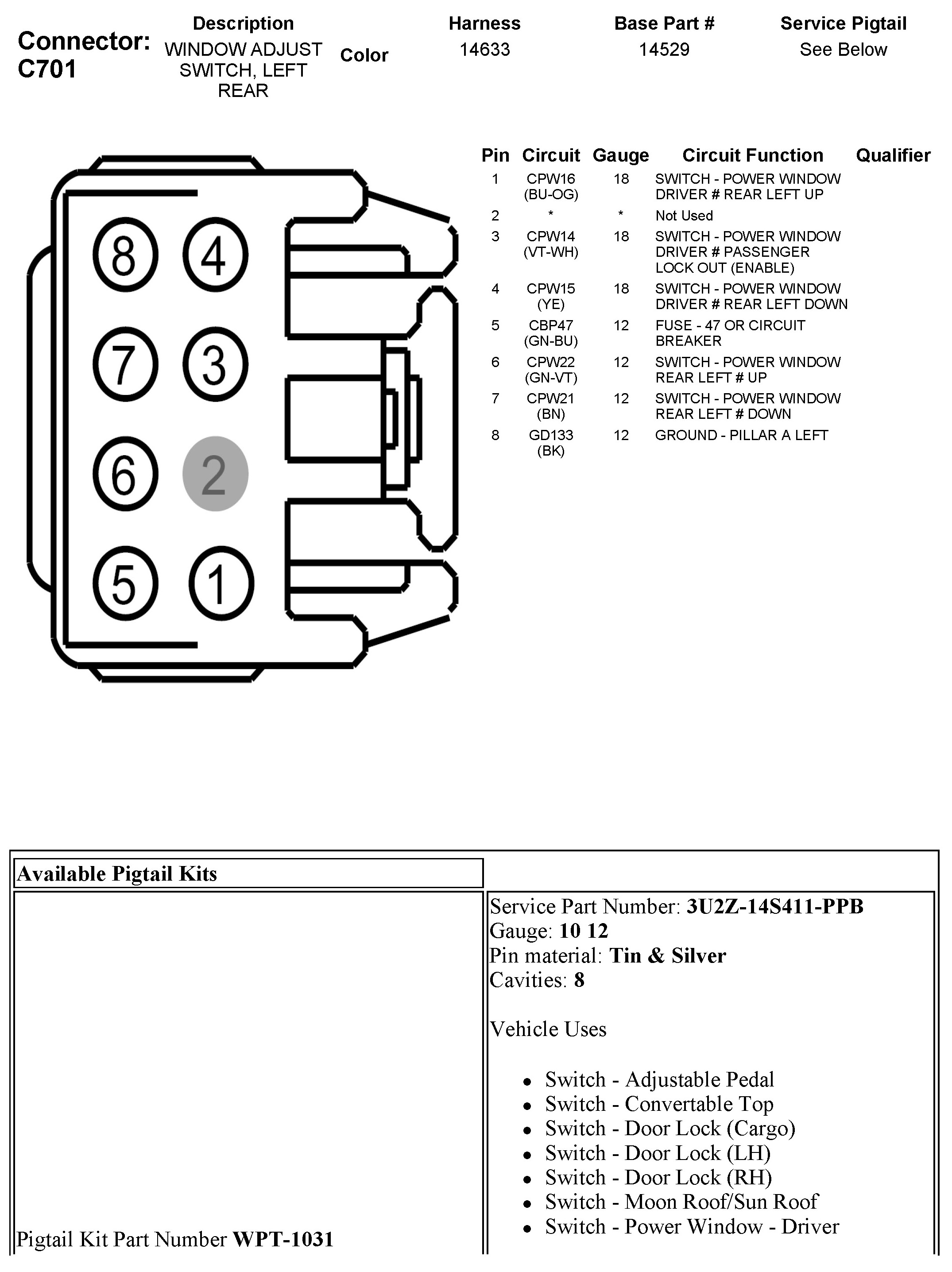 C701 Window Adjust Switch, Left Rear