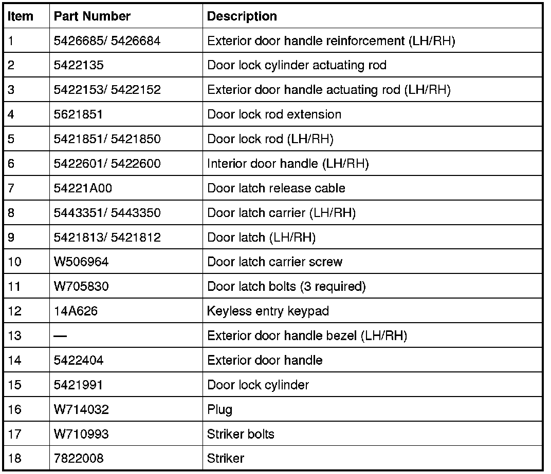 Front Door Handles, Locks and Latches - Exploded View