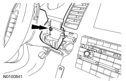 2. Pull the floor console finish moulding toward the rear of the vehicle to release from the retaining clips from the center instrument finish panel.
