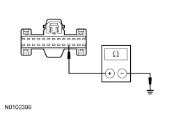 - Measure the resistance between the HVAC module C2357-17 (manual) or C228A-17 (DATC (Dual Automatic Temperature Control)), circuit GD114 (BK/BU), harness side and ground.