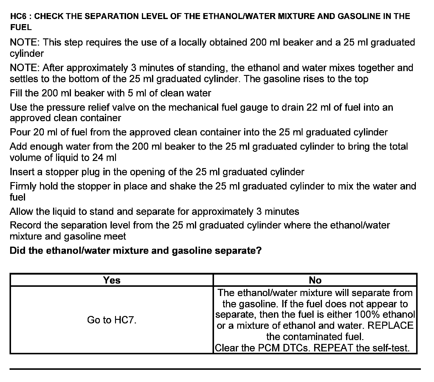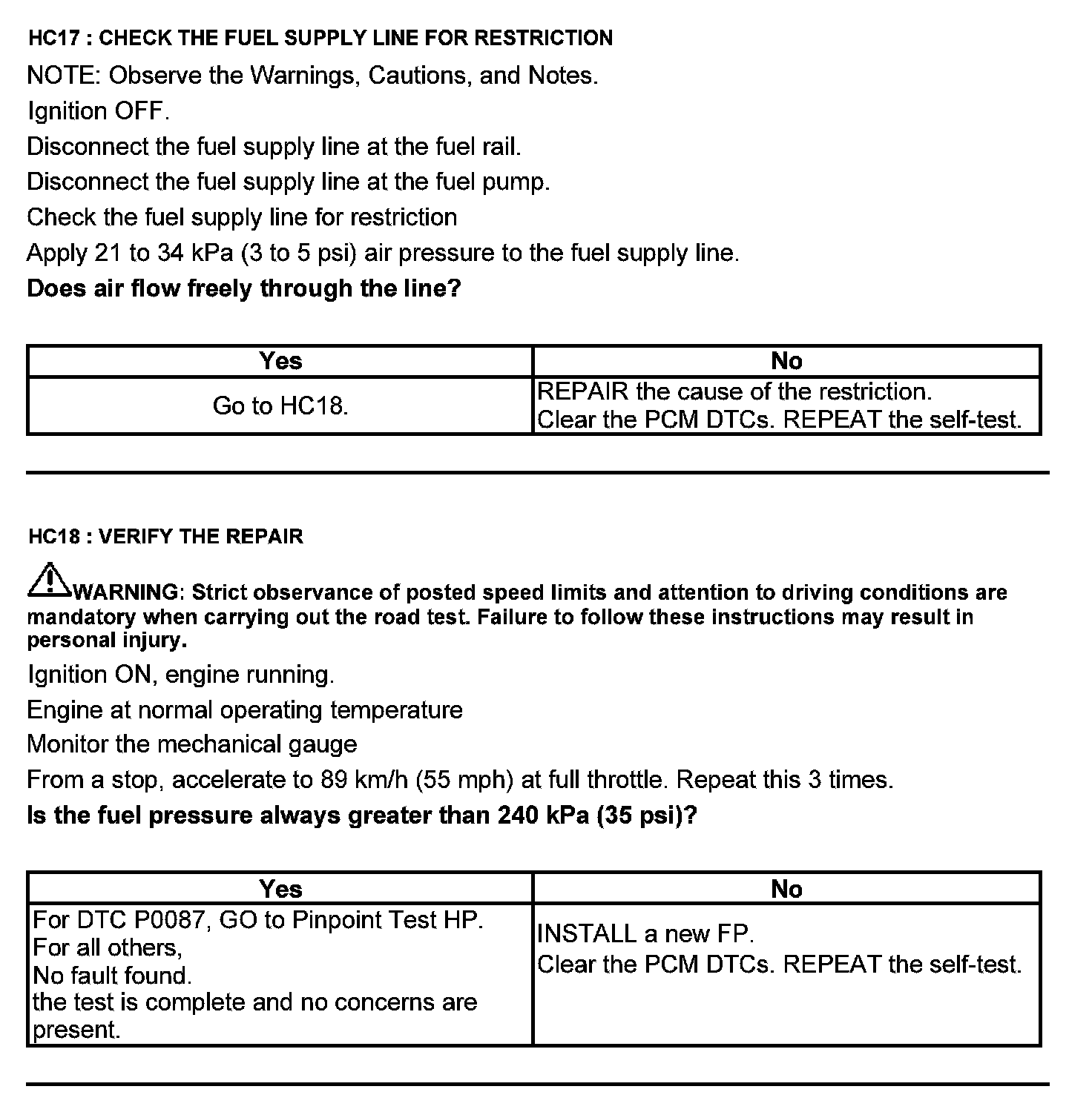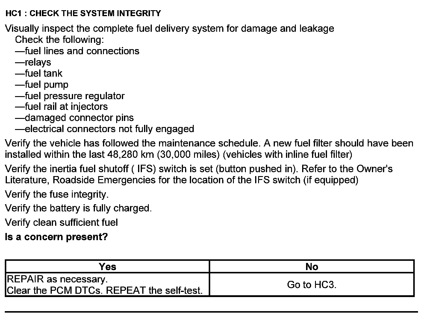 Test HC: Fuel Delivery System