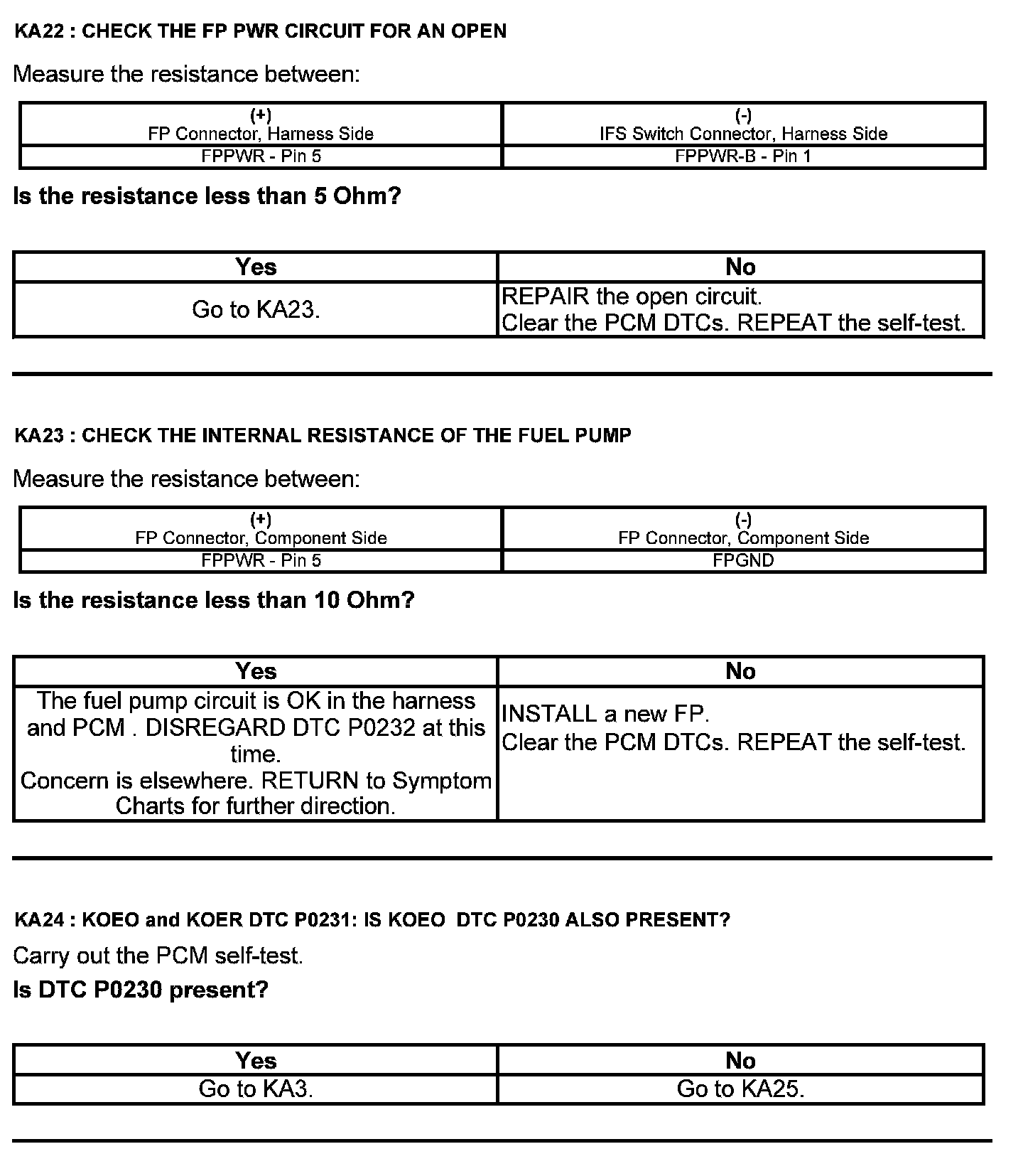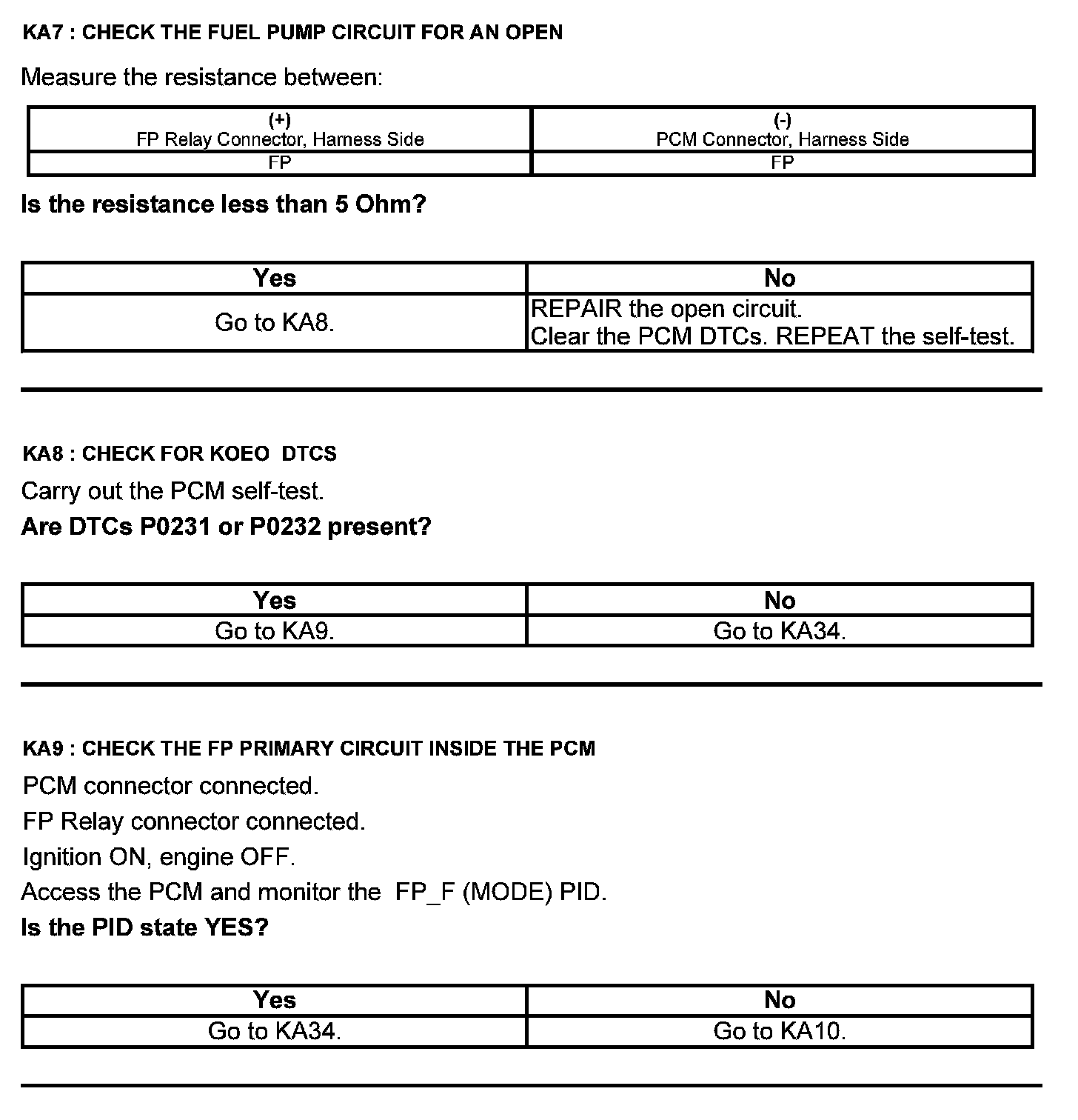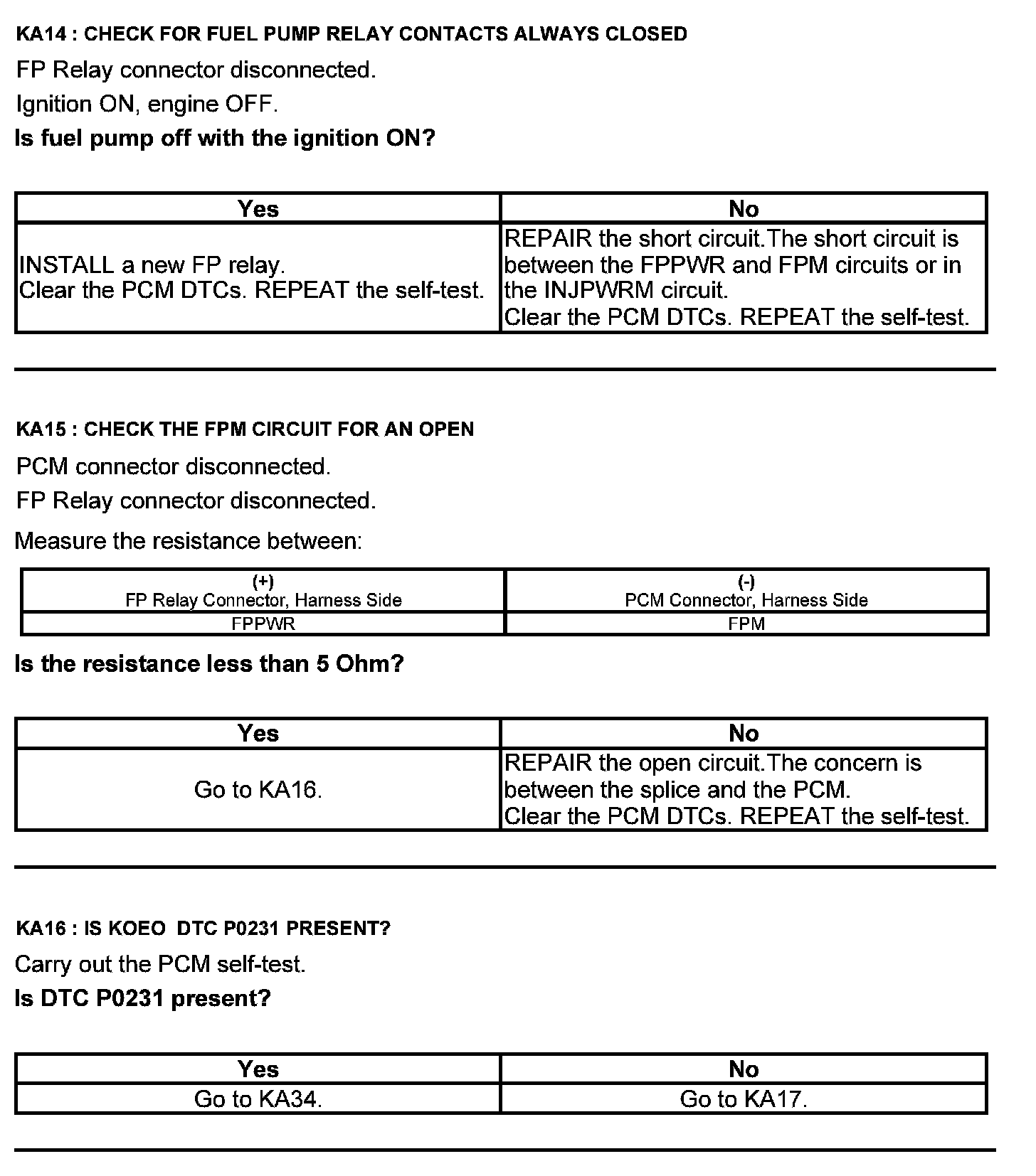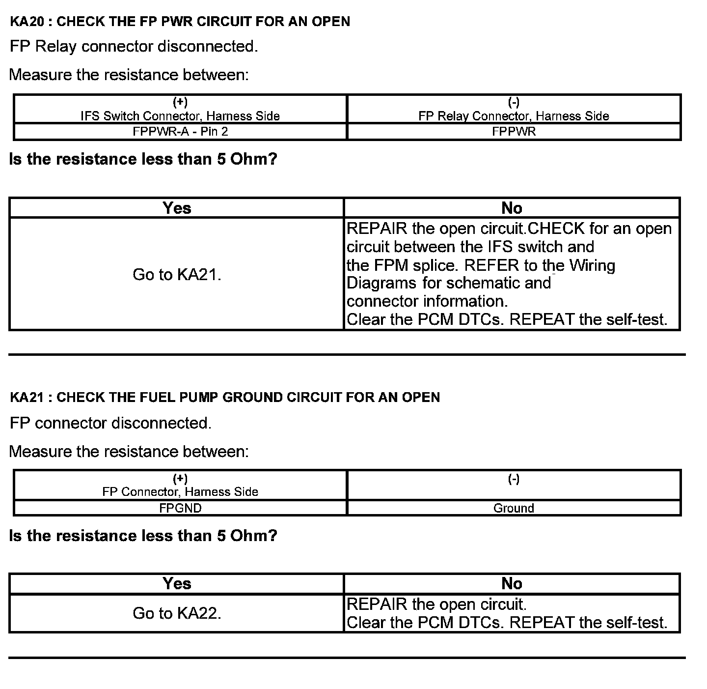 Test KA: Fuel Pump (FP) Relay