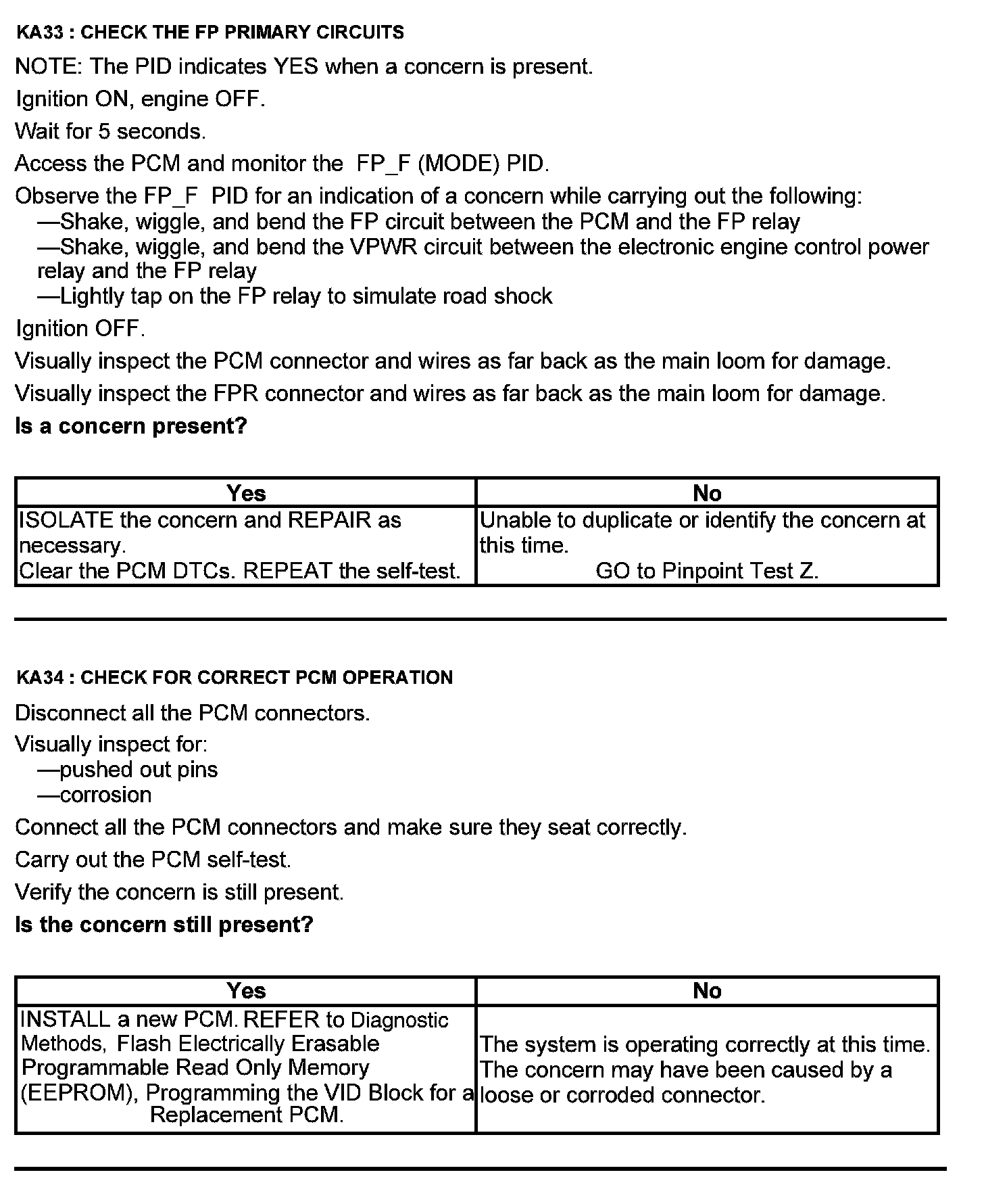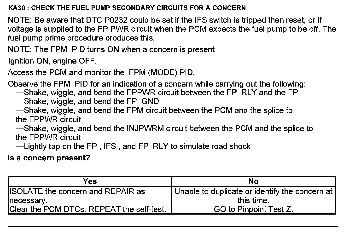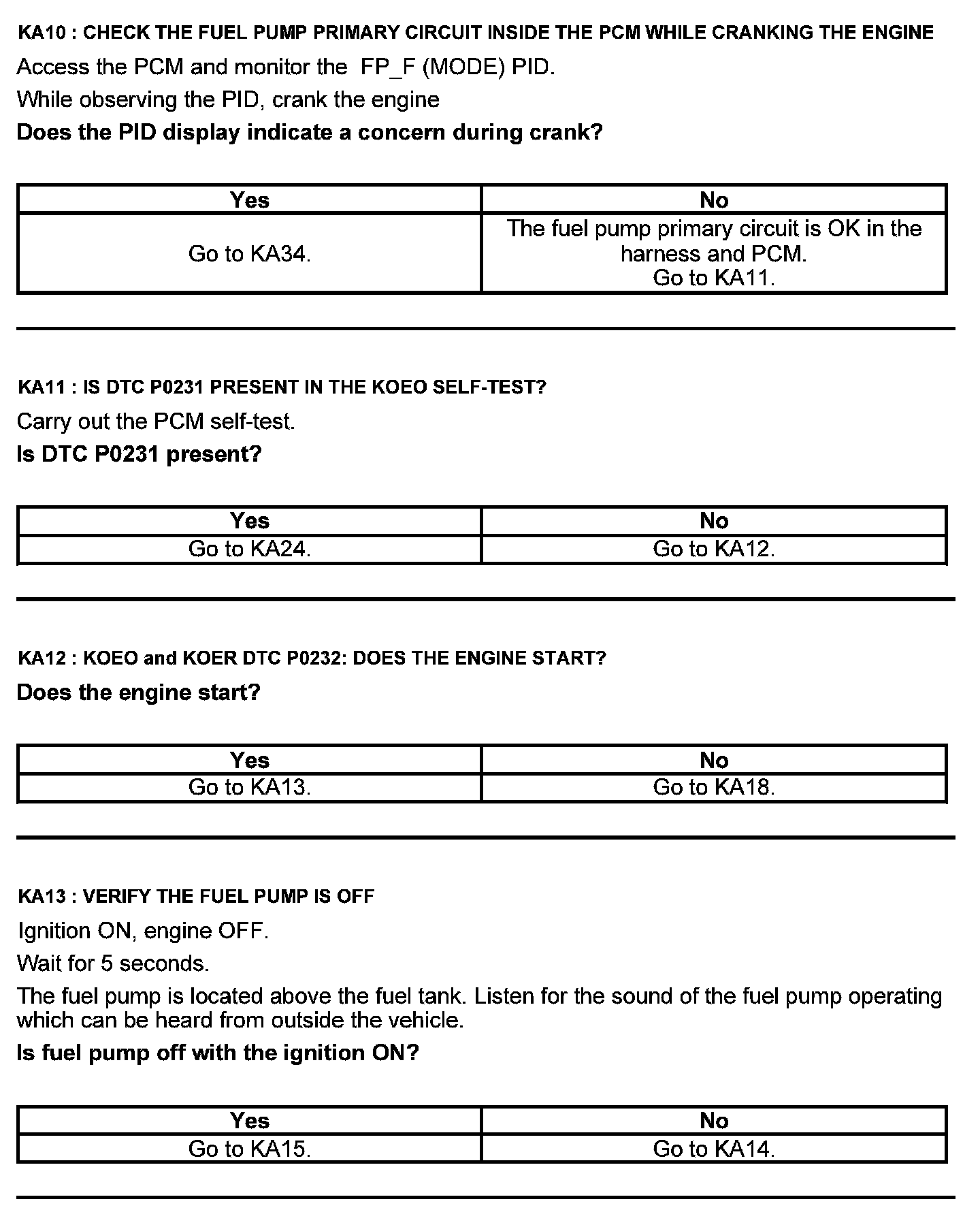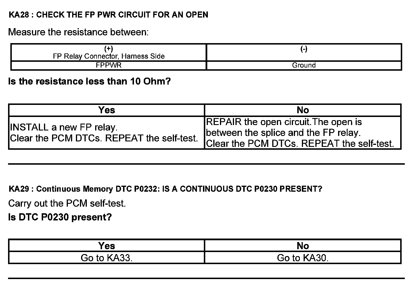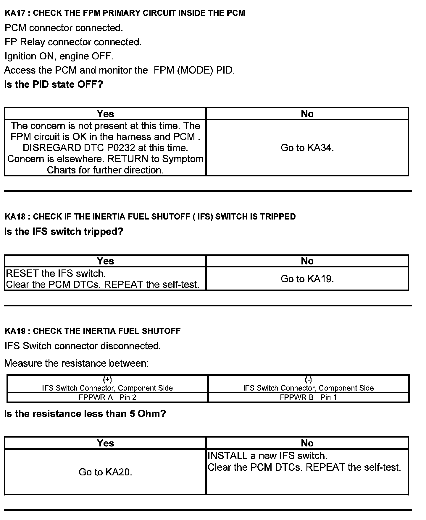 Test KA: Fuel Pump (FP) Relay