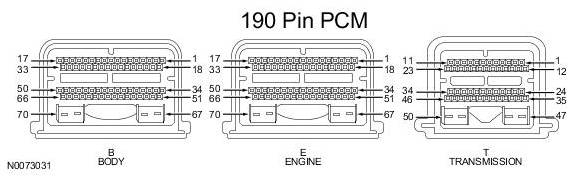 Powertrain Control Module (PCM) Connector - For PCM connector views or reference values, refer to Reference Values.