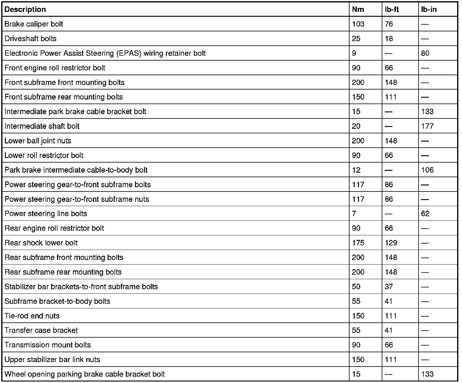 Torque Specifications