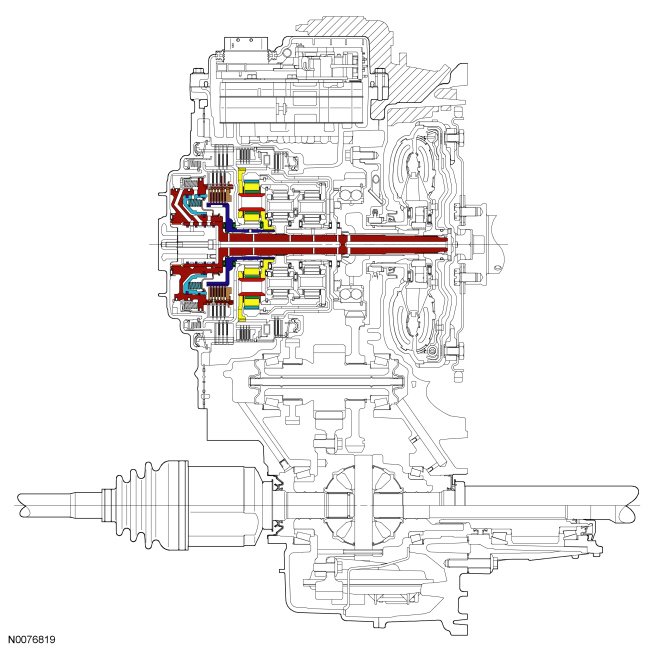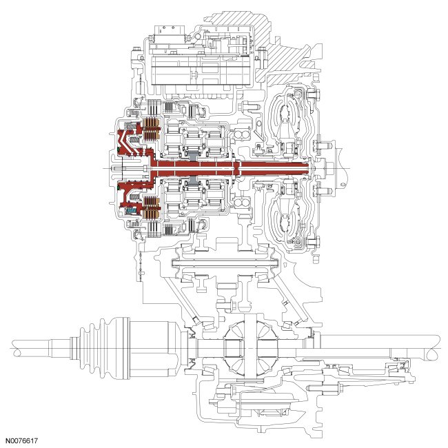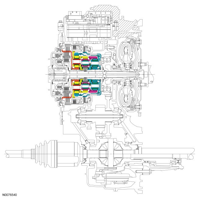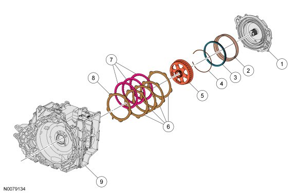 The overdrive clutch is a drive clutch that transfers power from the direct/overdrive hub and shaft assembly to the rear planetary carrier. The overdrive clutch is applied in 4th, 5th and 6th gear.