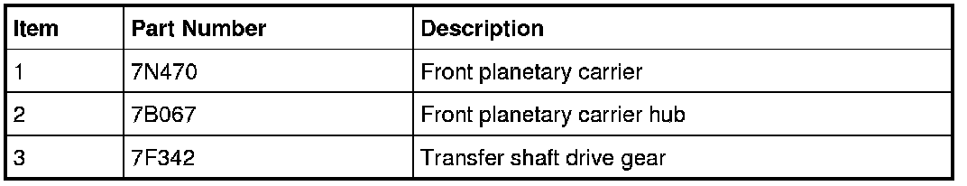 The front planetary carrier is splined to the rear planetary ring gear and transfers power from the rear planetary gearset to the front planetary gearset in 2nd, 3rd, 5th and 6th gear and reverse. The front planetary carrier is splined to the transfer shaft drive gear. The front planetary carrier is the output component for the planetary gearset.