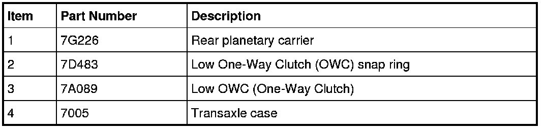 The low OWC (One-Way Clutch) is a brake clutch that holds the rear planetary carrier in one direction and allows it to freewheel in the opposite direction which eliminates engine braking in 1st gear when the transaxle is in DRIVE. The low OWC (One-Way Clutch) is used in 1st gear when the transaxle is in DRIVE.