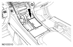 5. Push the brake shift interlock override mechanism on the selector lever forward, apply the brake, press the button on the selector lever and move the selector lever into NEUTRAL.