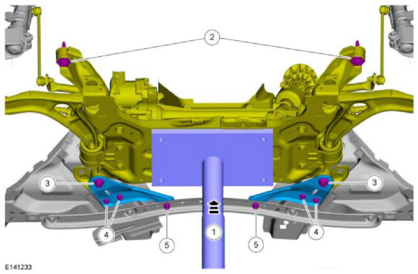4. NOTE: While tightening the subframe bolts, make sure the front subframe does not move.