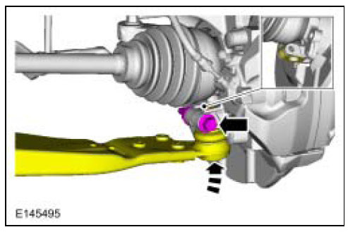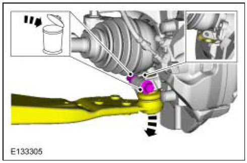- Use care when releasing the lower arm and wheel knuckle into the resting position or damage to the ball joint seal may occur.