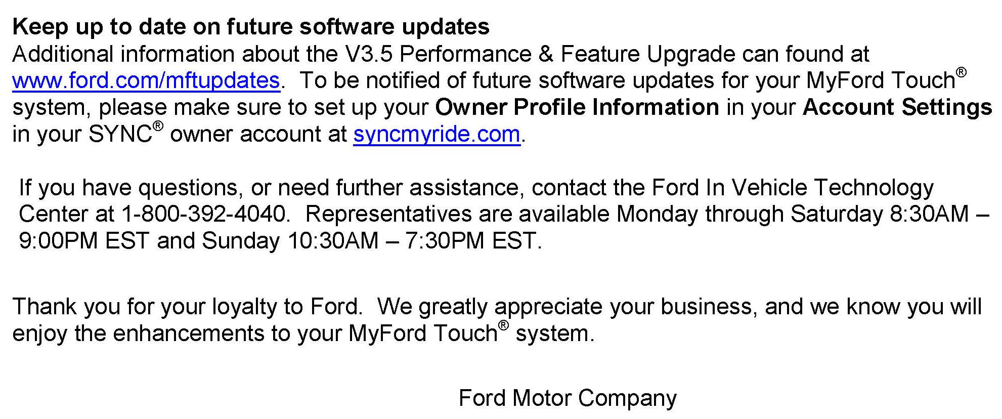 Campaign - MyFord Touch(R) Software Upgrades