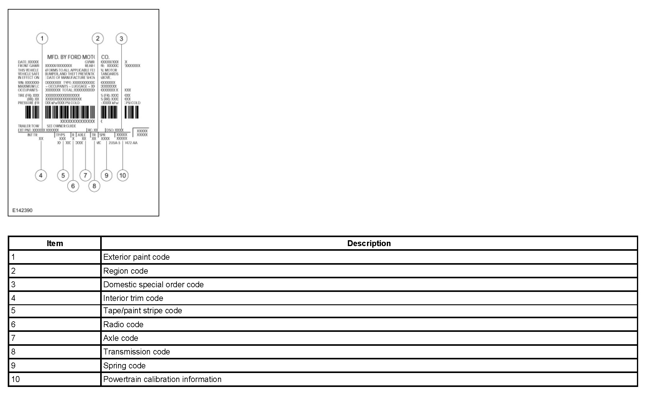 NOTE: Powertrain calibration information is limited to a maximum of 5 characters per line on the VC label. Because of this, calibration identification consisting of more than 5 characters will wrap to the second line on the VC label.