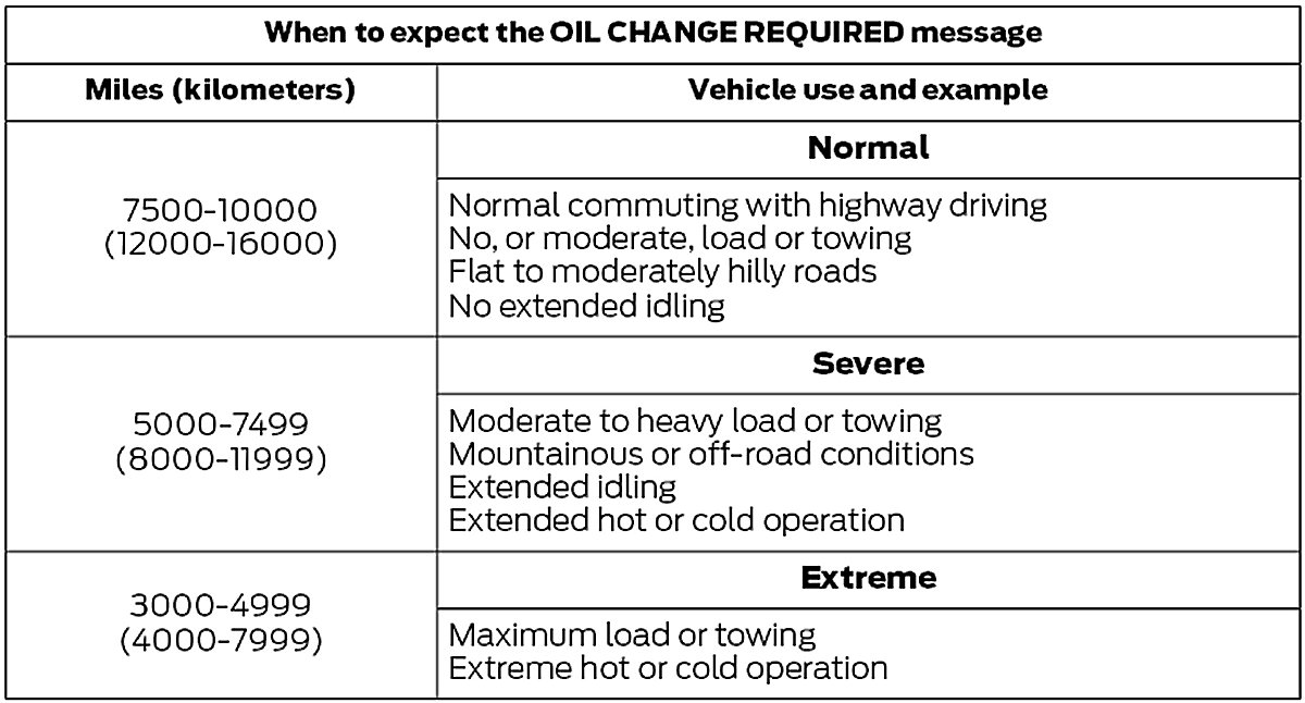 Your vehicle is equipped with the Intelligent Oil-Life Monitor system which displays a message in the information display at the proper oil change service interval. This interval may be up to one year or 10,000 miles (16,000 kilometers). When ENGINE OIL CHANGE DUE or OIL CHANGE REQUIRED appears in the information display, it is time for an oil change. The oil change must be done within two weeks or 500 miles (800 km) of the ENGINE OIL CHANGE DUE or OIL CHANGE REQUIRED message appearing. The Intelligent Oil-Life Monitor must be reset after each oil change. Refer to Service and Repair
