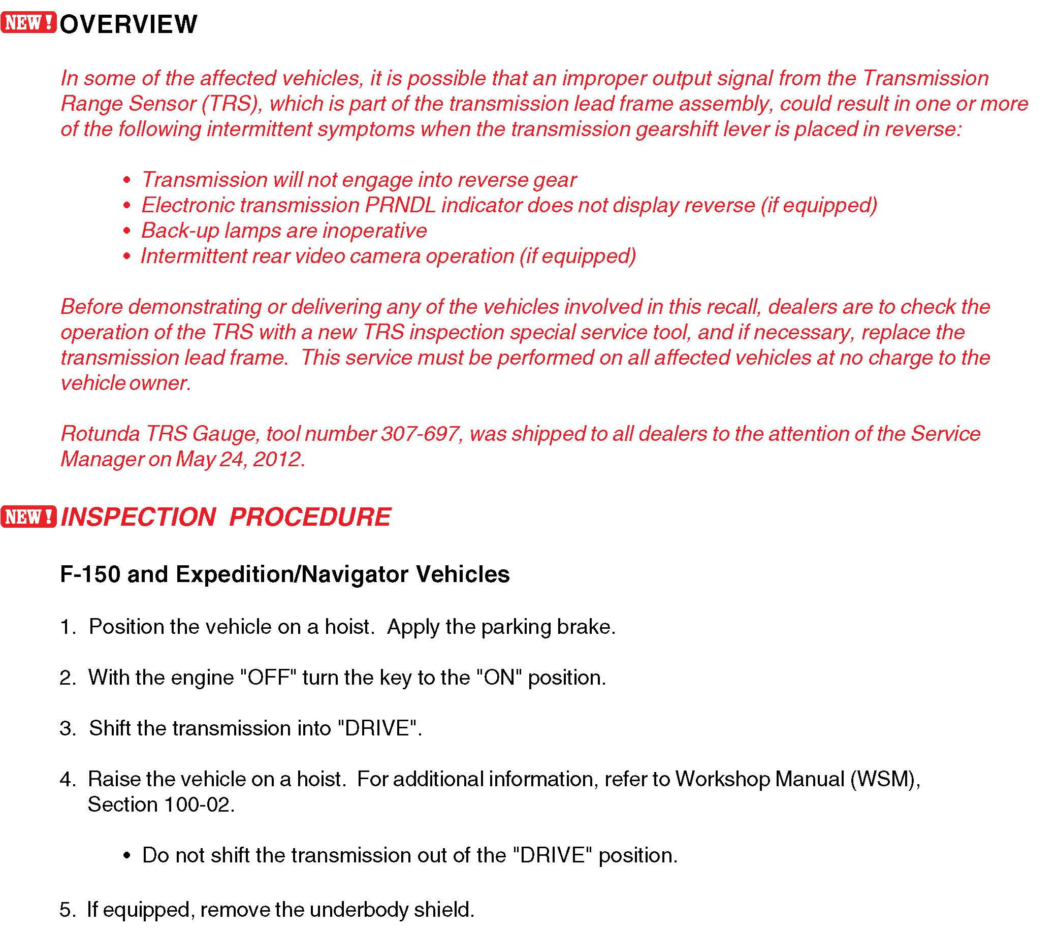 Recall - A/T Range Sensor Inspection/Replacement