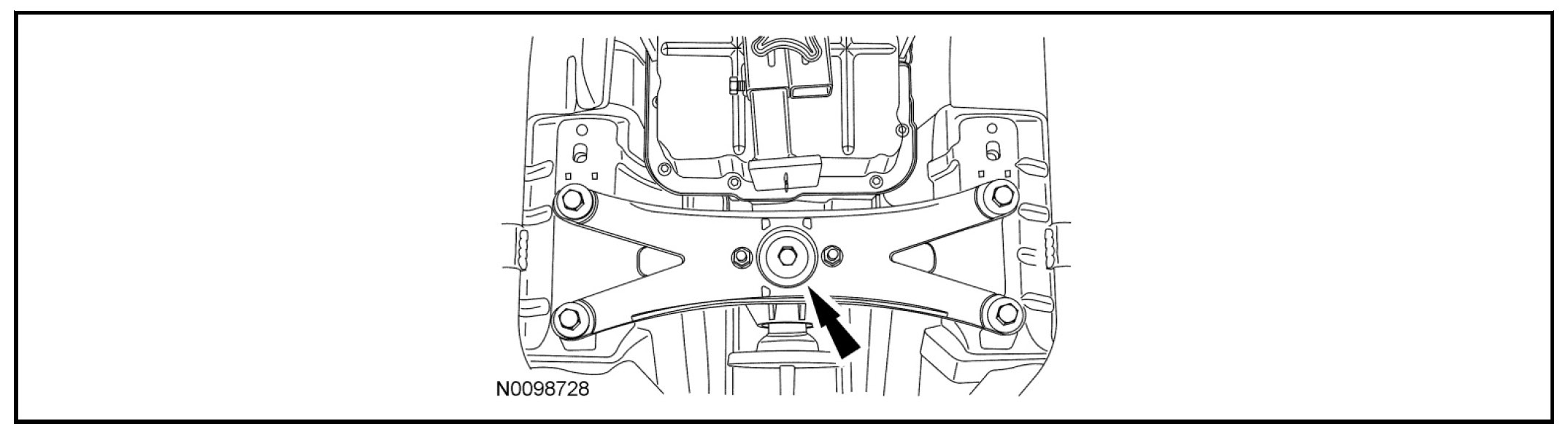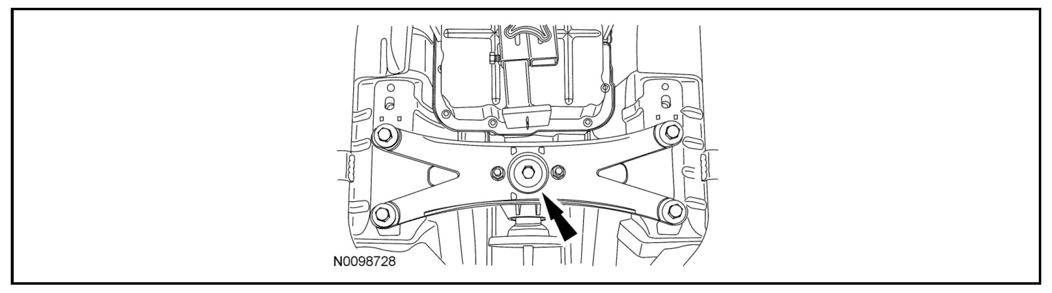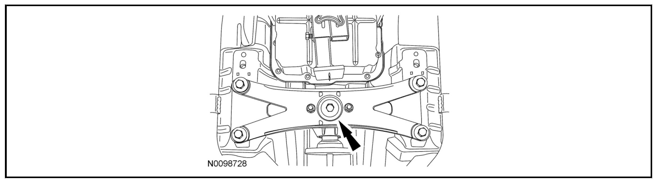 5. With the transmission support insulator neutralized, tighten the transmission crossmember bolts.
