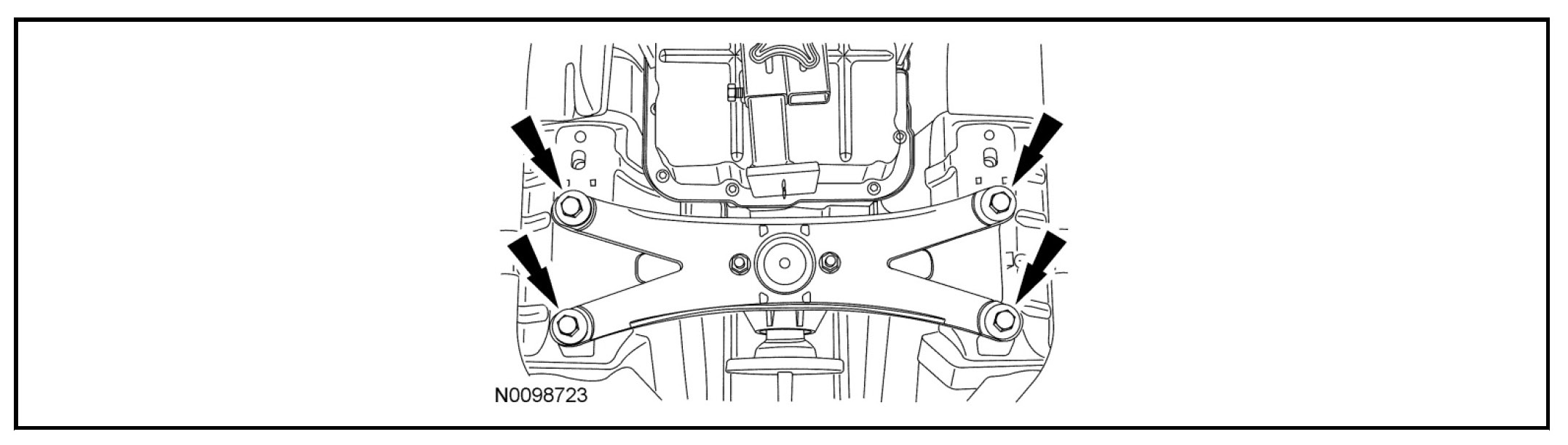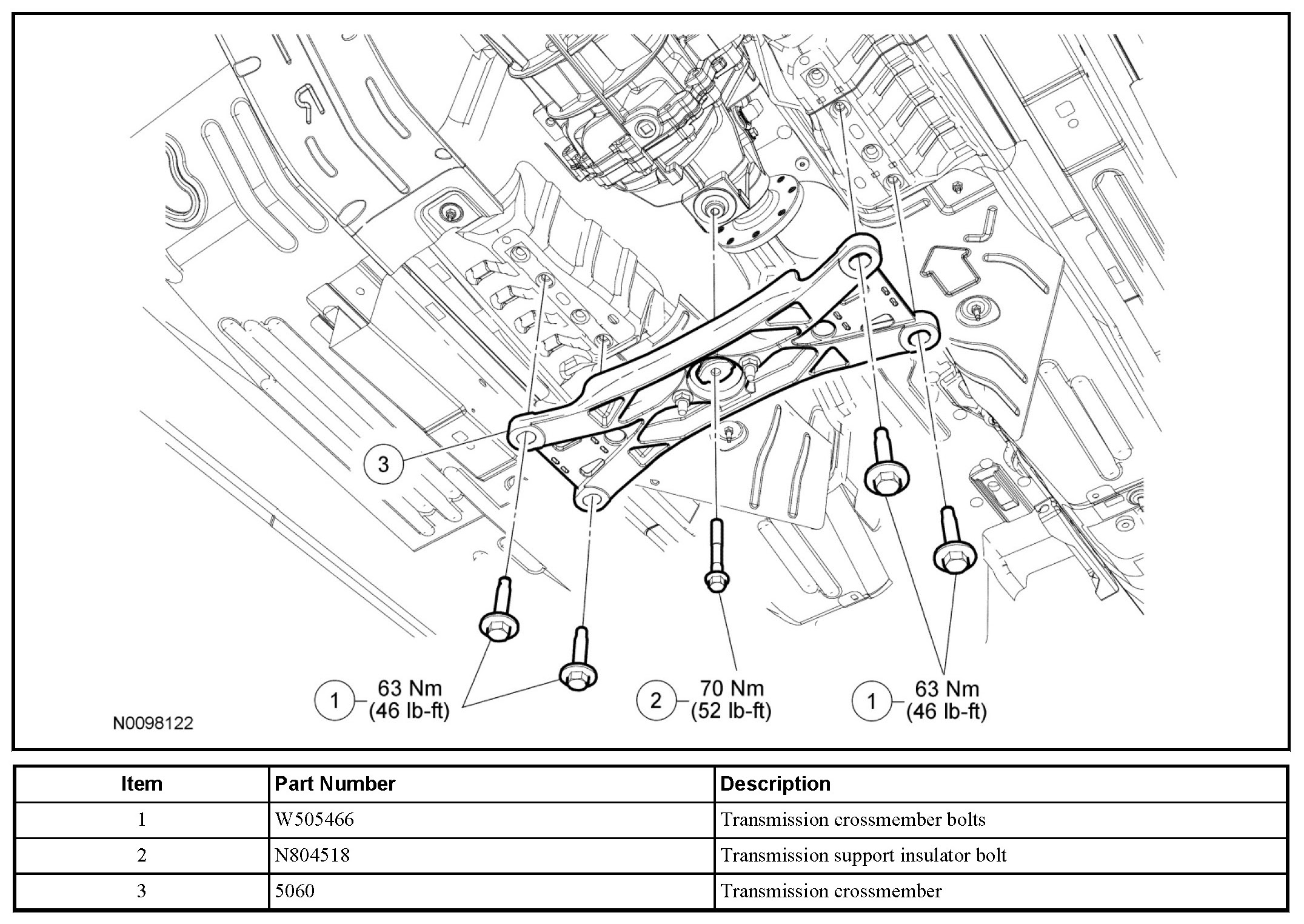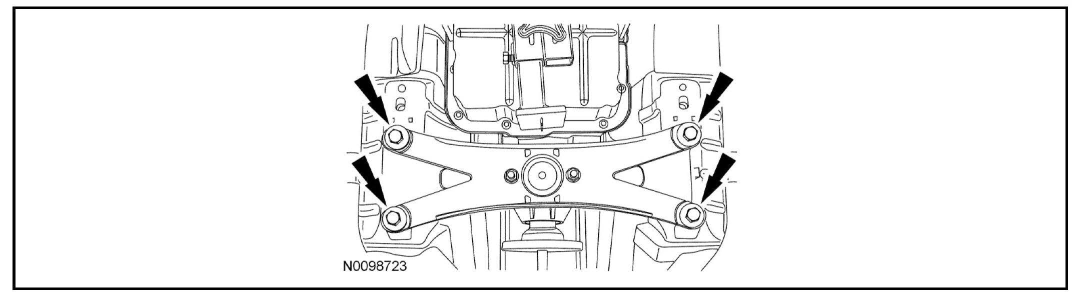 5. With the transmission support insulator neutralized, tighten the transmission crossmember bolts.
