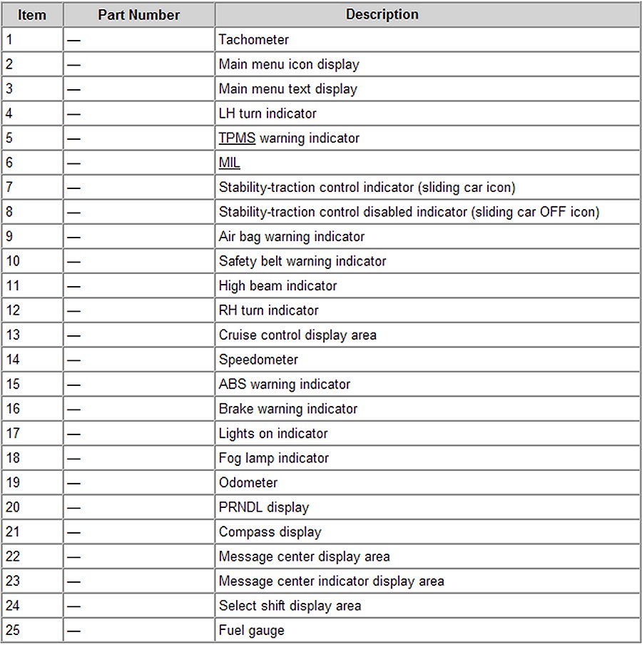 Instrument Panel, Gauges and Warning Indicators