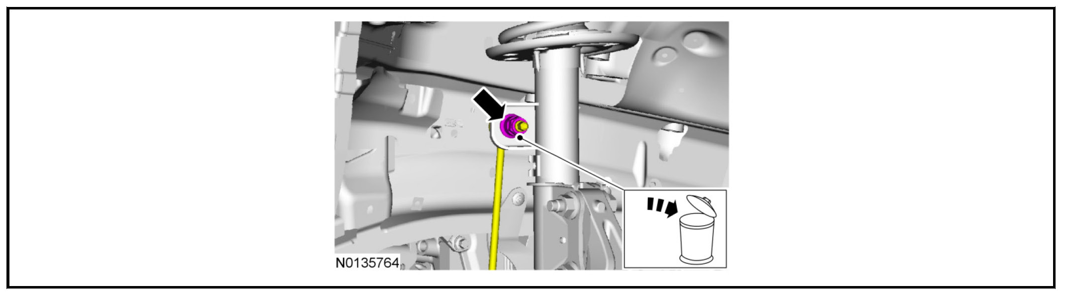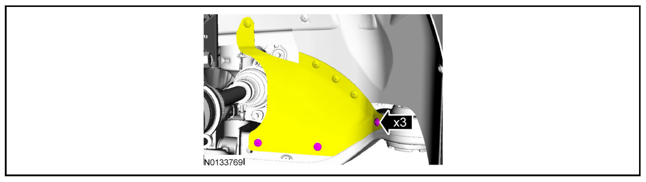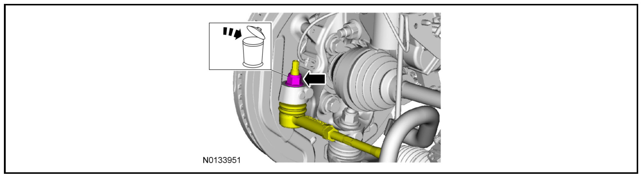 11. NOTICE: Use care when releasing the lower arm and knuckle into the resting position or damage to the ball joint seal or CV boot may occur.