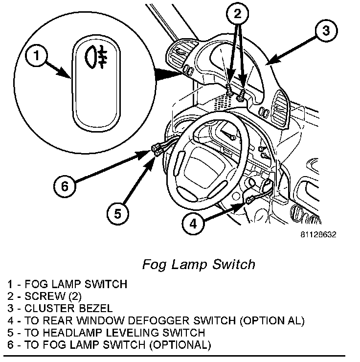 4. Remove the fog lamp switch from the face of the cluster bezel.