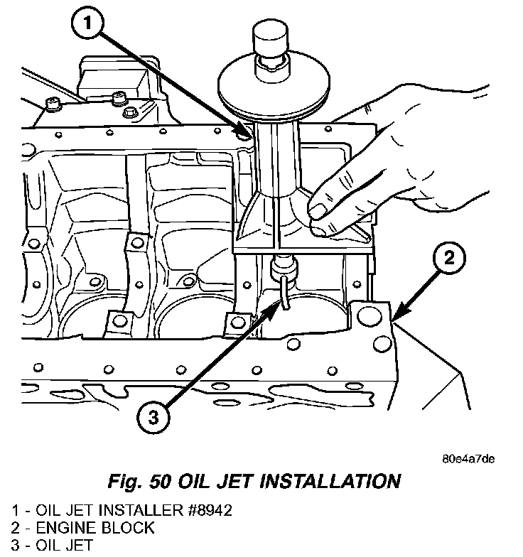 3. Drive oil jets into block using special tool #8924 until oil jet is fully seated into engine block (Fig. 50).