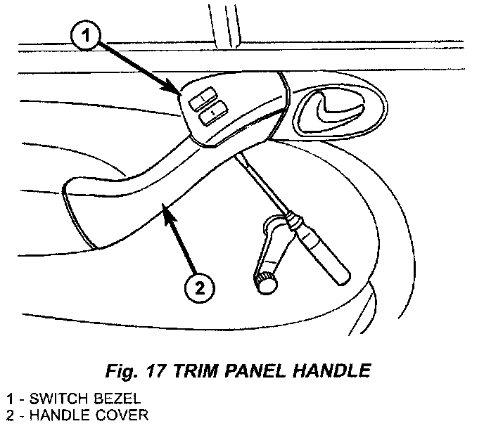 (2) Using a small flat bladed tool or equivalent, press retaining clip upward through cutout in handle cover and remove cover. (Fig. 17)