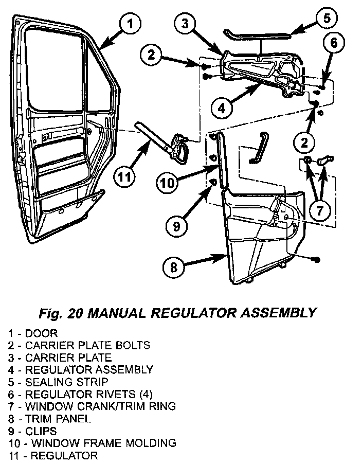 (7) Using a trim stick C-4755 or equivalent, separate window frame molding from door. (Fig. 20)