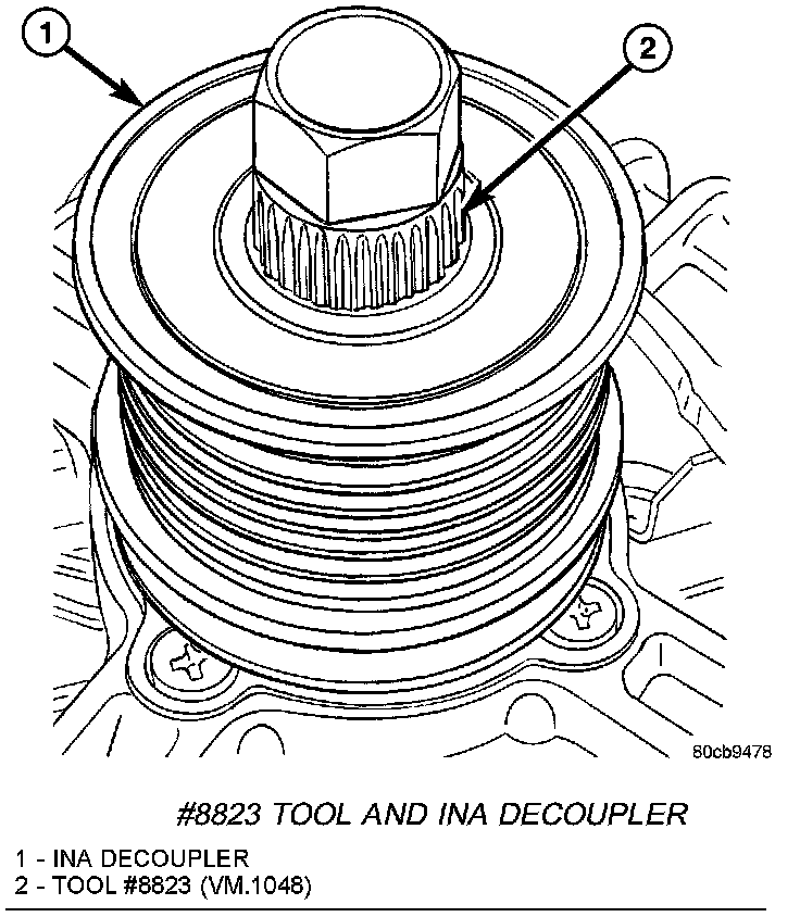 2. Position Special Tool #8823 (VM.1048) into decoupler.