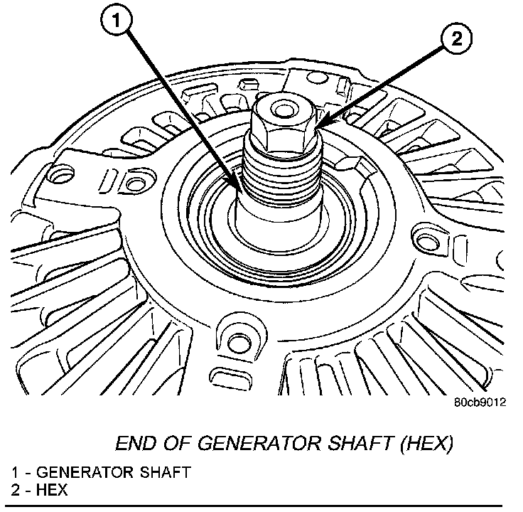 3. Determine if end of generator shaft is hex shaped or is splined. If hex is used, insert a 10MM deep socket into tool #8823 (VM.1048). If splined, insert a 5/16" 6-point hex driver, or a 10MM 12-point triple square driver into tool #8823 (VM.1048).