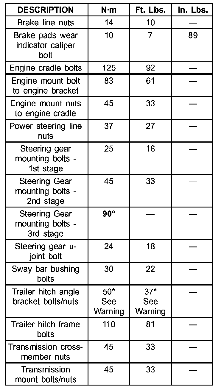 SPECIFICATIONS - TORQUE