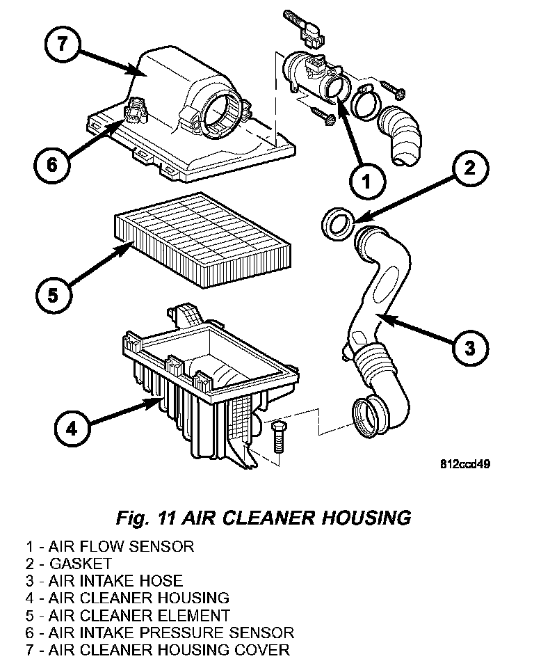 4. Disconnect the air intake pressure sensor, unclip the top of the air cleaner housing and remove (Fig. 11).
