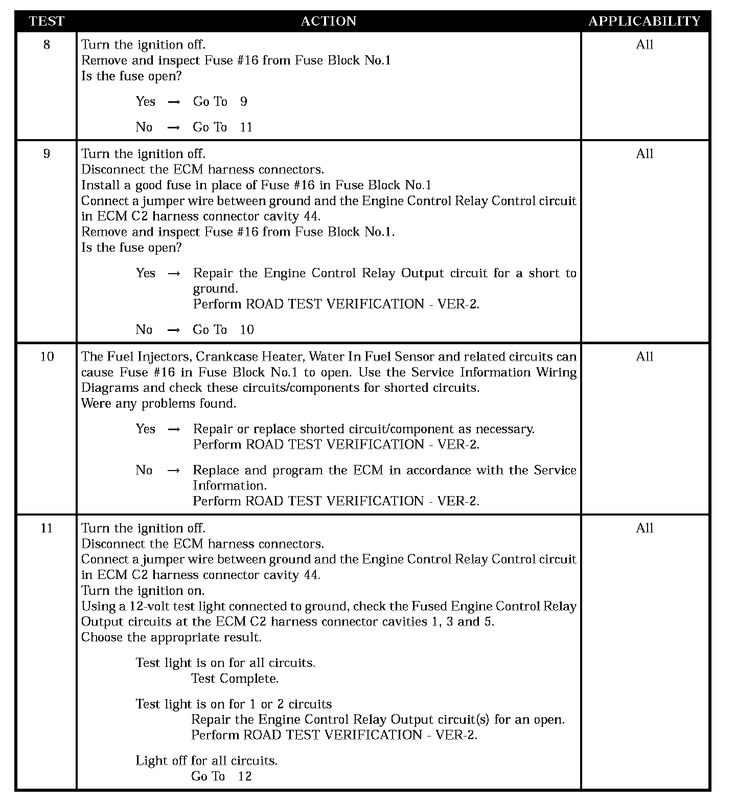 - Engine control relay output CKT shorted to ground fuse #16